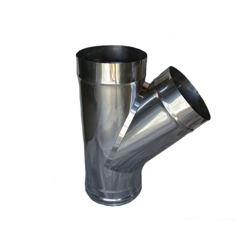 Тройник из нержавеющей стали применяется для формирования участка системы дымоудаления.