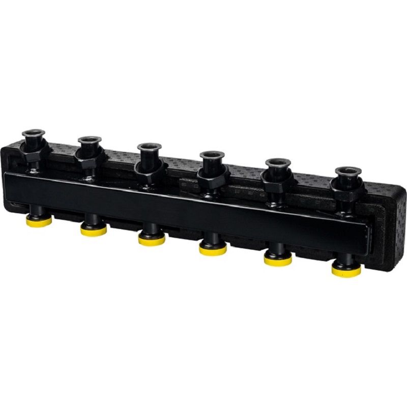- Распределительный коллектор STOUT представляет собой одну стальную коробчатую трубу прямоугольного сечения, к которой снизу и сверху соосно приварены парные патрубки (входные и выходные).