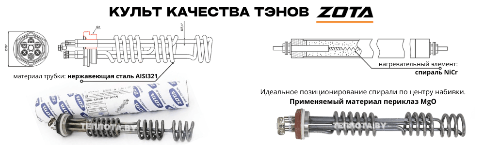 - блоки ТЭН из нержавеющей трубки диаметром 7,4 мм специальной конструкции с пониженной ваттной нагрузкой (возможна замена с помощью обычного ключа);