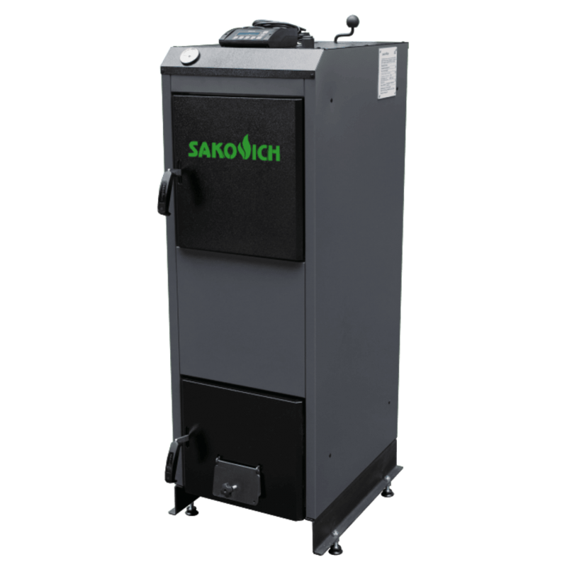 Котёл оснащён водонаполненным колосником и ручной регулировкой тяги.