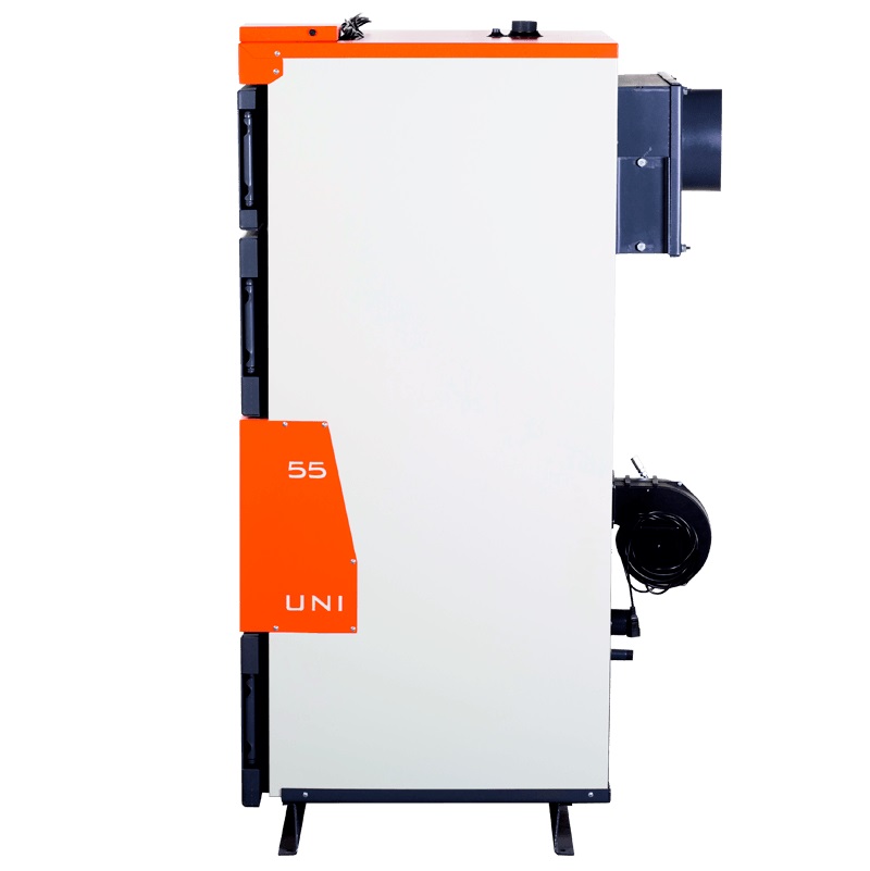 TIS UNI 50N– это современный котел длительного горения ПРЕМИУМ КЛАССА, для сжигания дров, торфа, угля и древесных отходов, оснащенный интеллектуальным пультом управления и новейшим модулируемым вентилятором. Отличительная черта это увеличенная загрузочная камера, долговечные чугунные колосники. Благодаря уникальным инновационным технологиям и конструктивным особенностям котла на твердом топливе, достигается полное извлечение тепловой энергии сжигаемого топлива. Многоступенчатая система подачи воздуха в первичную и во вторичную камеру сгорания обеспечивает максимальный дожег выделяемых газов. Температура отработанных газов не более 130*-150*С, тем самым достигается высокий КПД и увеличивается время работы на одной загрузке до 24 ч.