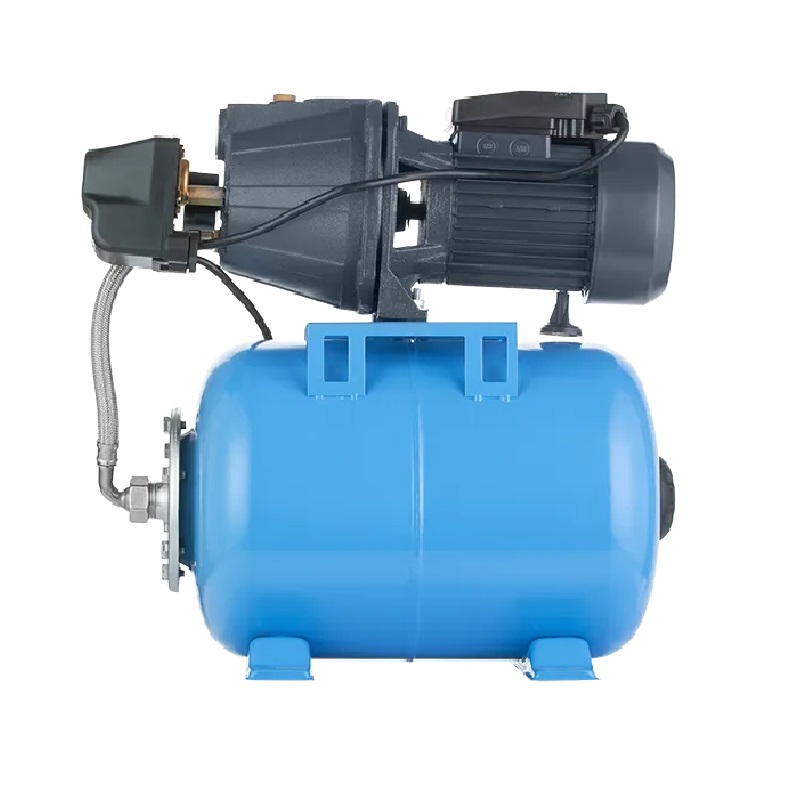 AUTO JET S – насосная станция на базе поверхностного центробежного насоса JET S, оснащенная гидроаккумулятором из углеродистой или нержавеющей стали, реле давления PM/5 и манометром. Максимальная высота всасывания – 8 метров.