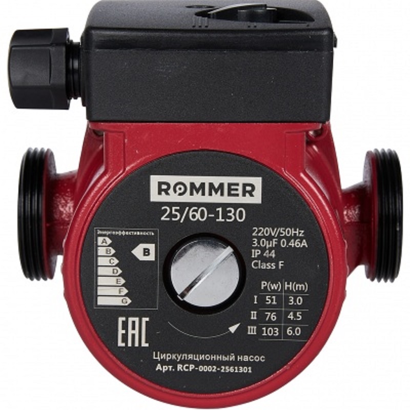 Rommer 25/60-130 – качественная разработка российского бренда в сфере насосного оборудования. Прибор, оснащенный ротором «мокрого» типа, способен работать в одном из трех режимов, выбранном пользователем. Модель устойчива к высокому давлению в отопительной системе и резким перепадам температуры.