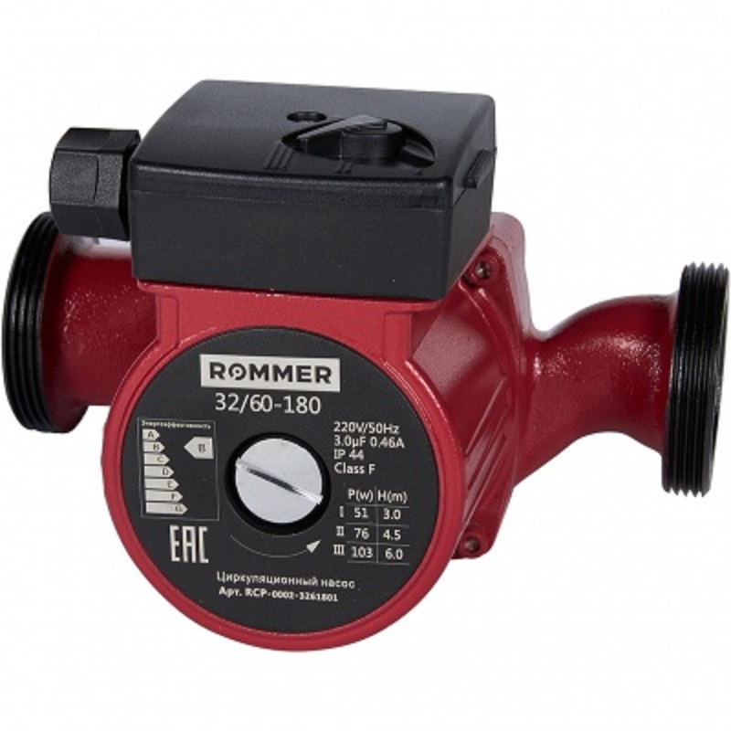 Rommer 32/60-180 – качественная разработка российского бренда в сфере насосного оборудования. Прибор, оснащенный ротором «мокрого» типа, способен работать в одном из трех режимов, выбранном пользователем. Модель устойчива к высокому давлению в отопительной системе и резким перепадам температуры.