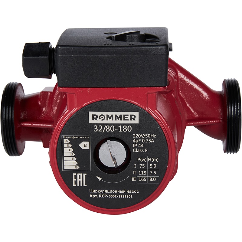 Rommer 32/80-180 – качественная разработка российского бренда в сфере насосного оборудования. Прибор, оснащенный ротором «мокрого» типа, способен работать в одном из трех режимов, выбранном пользователем. Модель устойчива к высокому давлению в отопительной системе и резким перепадам температуры.