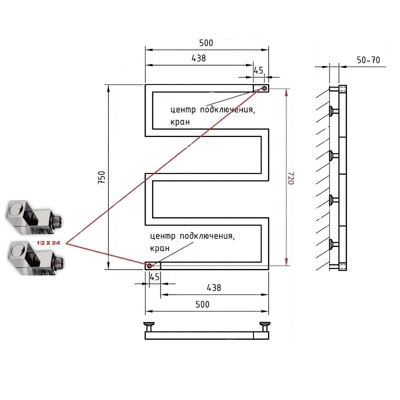 | Размер (Межосевое x длина) мм. | Количество перекладин | Тепловая мощность (Вт.) | Материал |