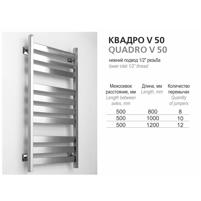 | Размер (Межосевое x длина) мм. | Количество перекладин | Тепловая мощность (Вт.) | Материал |