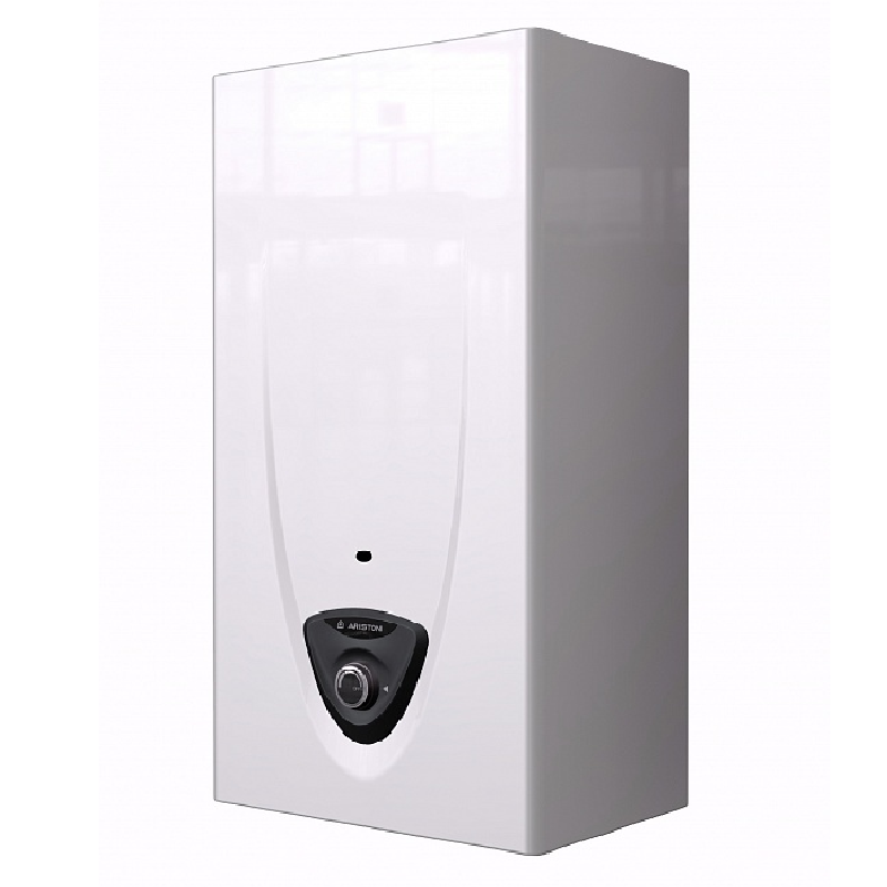 Газовый проточный настенный водонагреватель Ariston Fast Evo 14 B с открытой камерой сгорания.