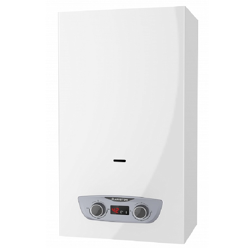 Ariston FAST R DISPLAY имеет розжиг от батареек (с индикацией замены), открытую камеру сгорания, минимальные требования к давлению воды и газа, отличаются простым монтажом и компактными размерами.