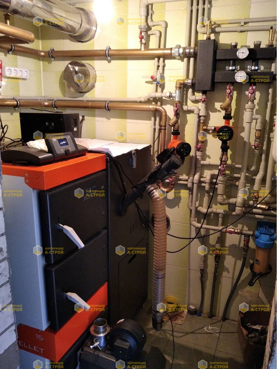 Обвязка котельной выполнена трубами из нержавеющей стали.