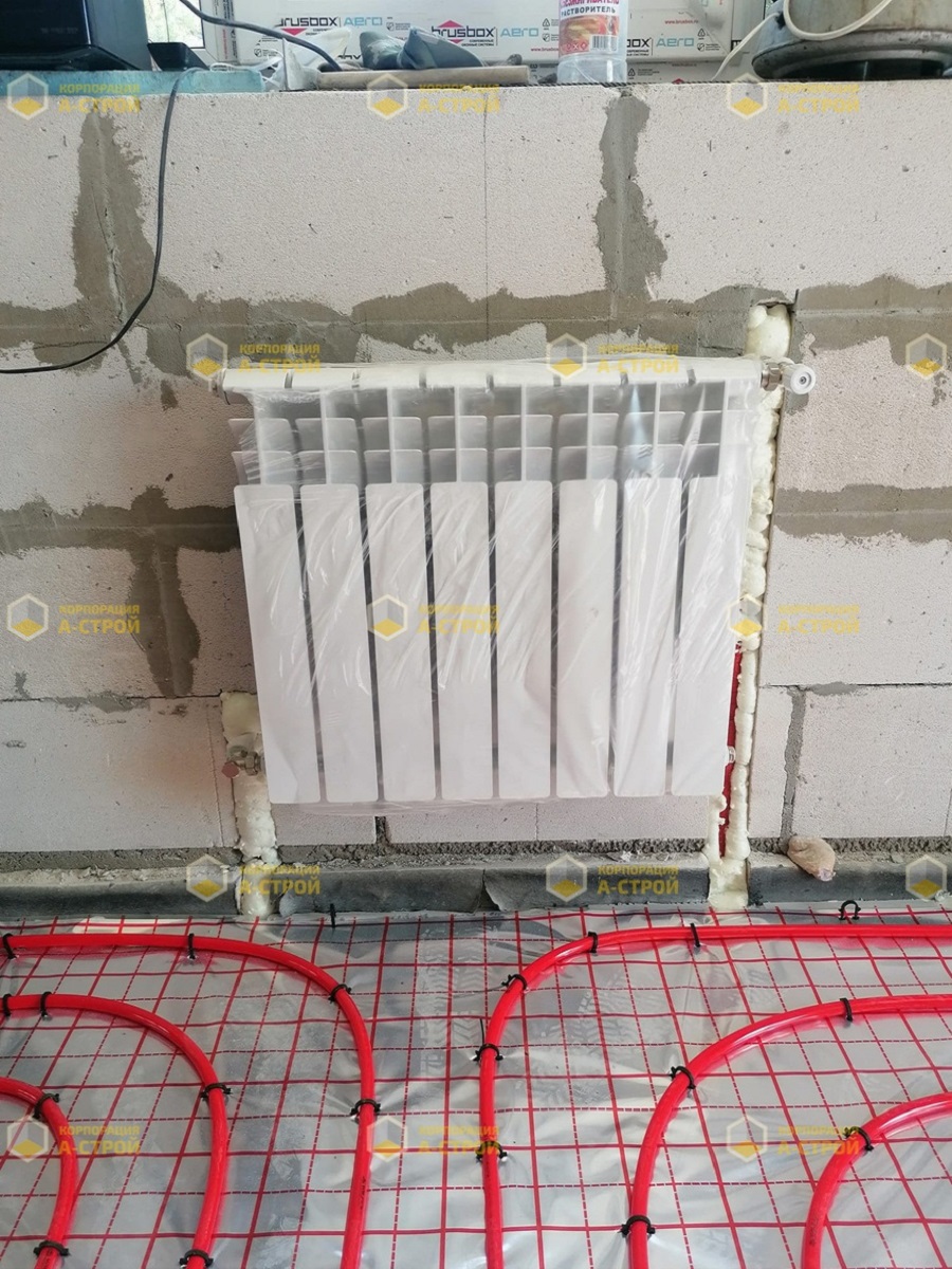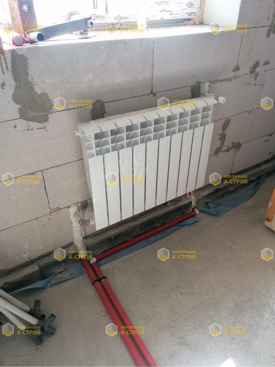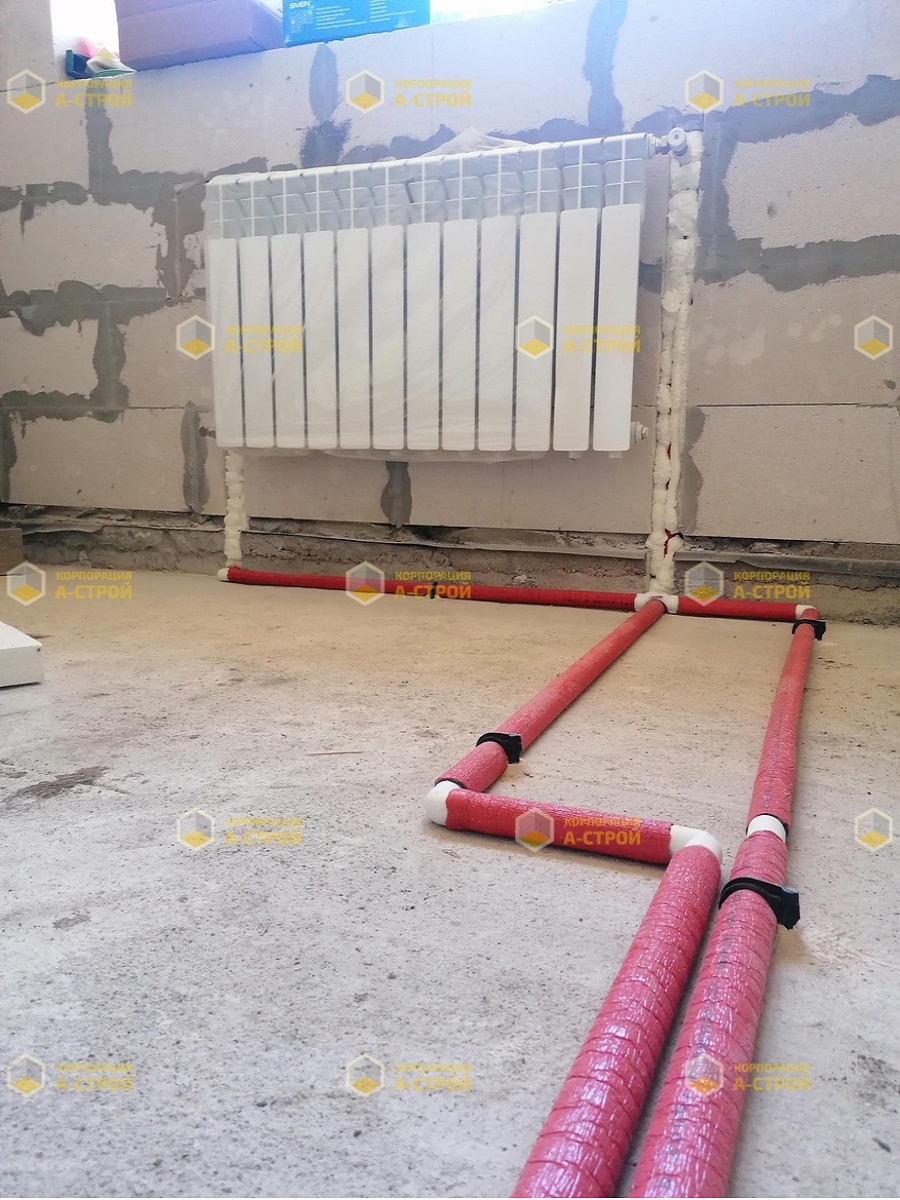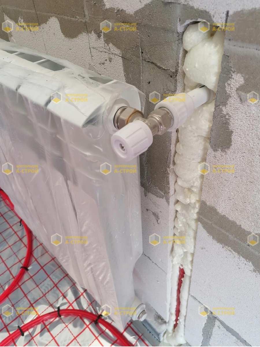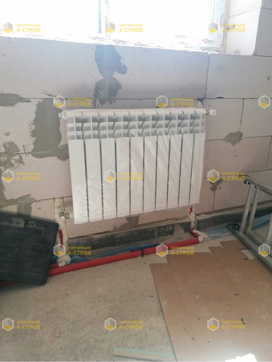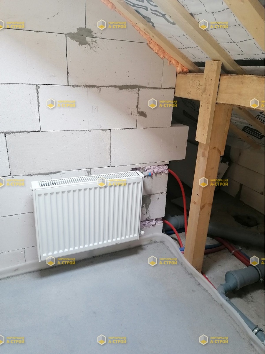 Монтаж газового котла с раздельной системой дымоудаления, бойлера косвенного нагрева, расширительных баков, гидроаккумулятора, распределительного коллектора с гидрострелкой и группами быстрого монтажа.